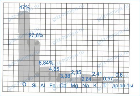 2. Изобразите столбчатую диаграмму химического состава земной коры, в которой символами обозначены все указанные химические элементы, приведенные в таблице 10.