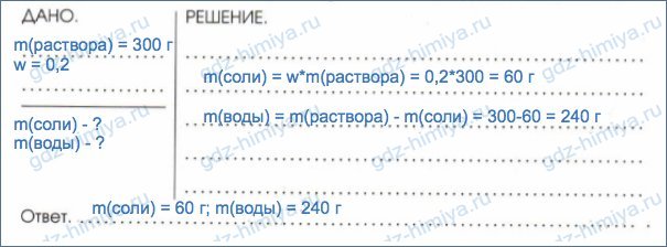 5. Определите массы соли и воды, которые потребуются для приготовления 300 г раствора с массовой долей соли 20%.