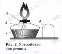 1. Рассмотрите рисунок 2 и напишите название каждой части спиртовки. Необходимую информацию вы найдете на с.23 учебного пособия.