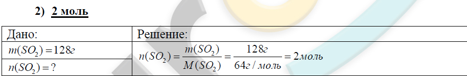 9А. Количество вещества, составляющие 128 г оксида серы (IV), равно:
