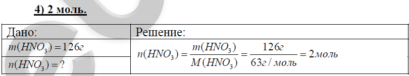 10А. Количество вещества, составляющее 126 г азотной кислоты, равно: