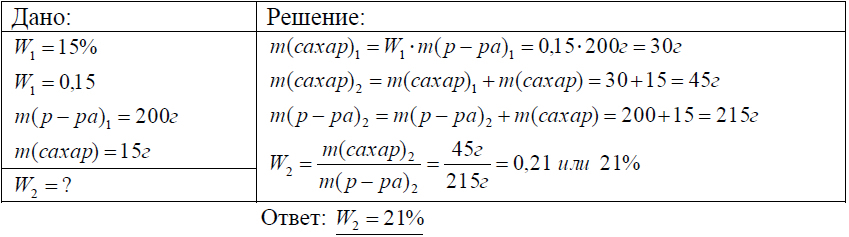 11С. К 200 г 15%-го раствора сахара добавили 15 г сахара. Какова массовая доля сахара в полученном растворе?