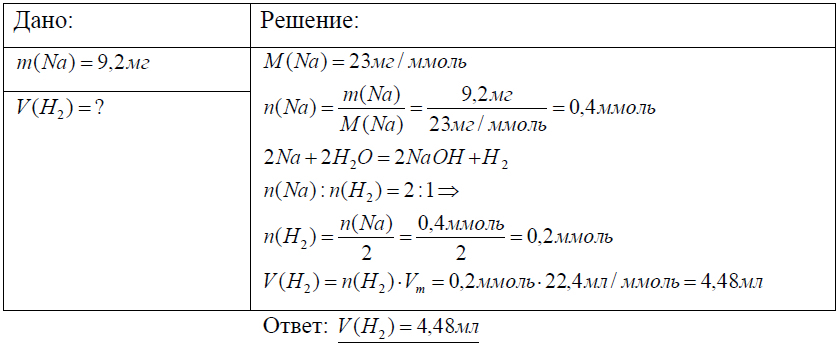 12С. Вычислите объем (н.у.) водорода, который образуется при взаимодействии 9,2 мг натрия с водой.