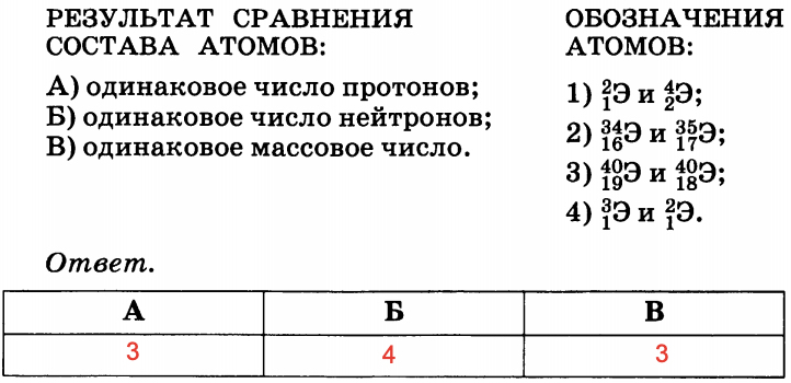 10В. Установите соответствие между результатом сравнения состава атомов и их обозначениями.