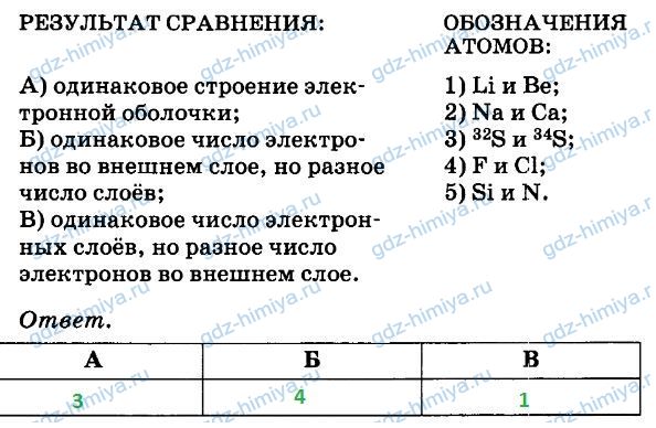 10В. Установите соответствие между результатом сравнения строения электронных оболочек атомов и обозначениями атомов.