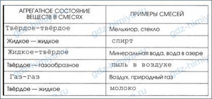 4. Дополните таблицу, записав в неё по два примера смесей.