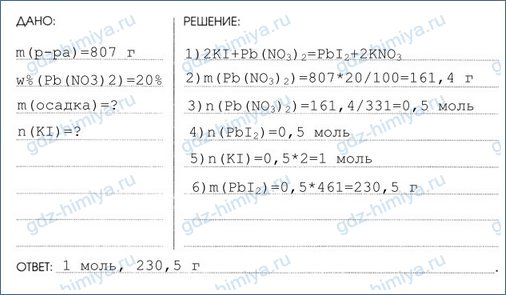 5. Вычислите массу осадка, который выпадает при сливании 807 г 20% -го раствора нитрата свинца с раствором, содержащим необходимое количество иодида калия. Определите количество иодида калия.