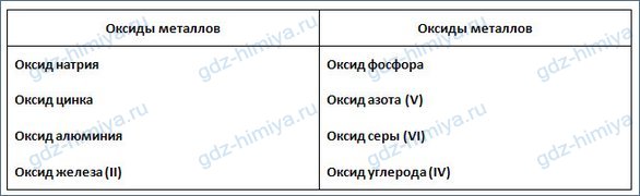 Распределите все приведённые в таблице оксиды на две группы. Запишите их названия.