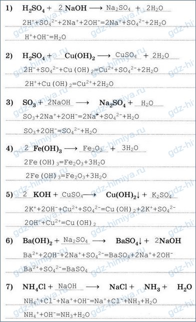 4. Приведите примеры уравнений реакций, характеризующих общие свойства оснований, в молекулярном, полном ионном и сокращённом ионном видах.
