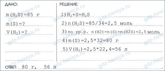 8. Рассчитайте объём водорода и массу серы, которые необходимы для образования 85 г сероводорода.