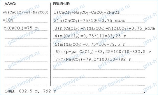 8. Вычислите, сколько граммов 10% -х растворов исходных солей потребуется для получения 75 г карбоната кальция.