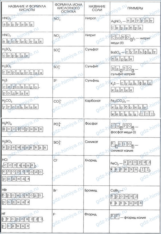 3. Дополните таблицу «Кислоты».