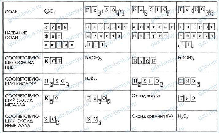 7. Дополните таблицу «Соли и соответствующие им гидроксиды и оксиды».