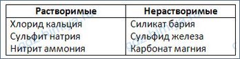 Разделите все приведённые выше соли на растворимые и нерастворимые. Напишите их названия.