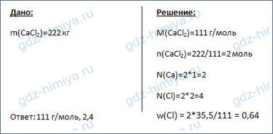 7. Вычислите количество вещества, которое составляют 222 кг хлорида кальция. Сколько ионов каждого вида будет содержать это количество? Какова массовая доля хлора в соли?