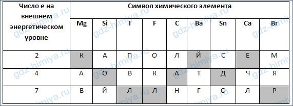 4. Установите соответствие между символом химического элемента (в заданном порядке) и числом энергетических уровней в электронной оболочке атома. Из букв, соответствующих правильным ответам, вы составите название частиц, в свою очередь, состоят протоны и нейтроны: кварки.