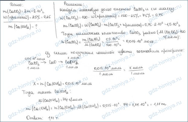 3. Вычислите количество вещества гашеной извести, которое может быть получено из 2 т известняка, содержащего 25% примесей.