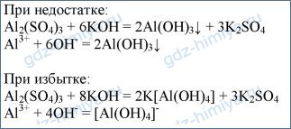 5. Напишите в ионном виде уравнения реакций между растворами сульфата алюминия и гидроксида калия при недостатке и избытке последнего.