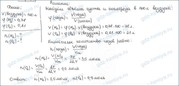2. Зная объемный состав воздуха, найдите количество вещества каждого газа: азота и кислорода — в 100 л воздуха при н.у.