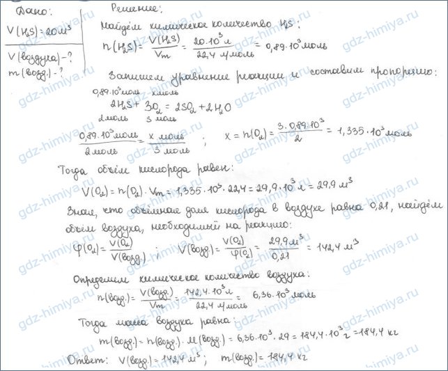 4. Вычислите объем воздуха (н.у.), который потребуется для сжигания 20 м3 сероводорода, если при этом образуются вода и оксид серы (IV). Вычислите массу этого воздуха.