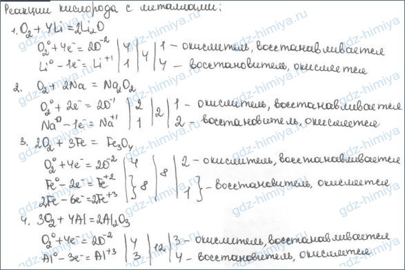 1. Напишите уравнения реакций кислорода с металлами, о которых говорится в параграфе. Рассмотрите окислительно-восстановительные процессы.