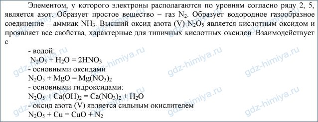 2. Назовите химический элемент, в атоме которого электроны располагаются по уровням согласно ряду чисел: 2, 5. Какое простое вещество образует этот элемент? Какую формулу имеет его водородное соединение и как оно называется? Какую формулу имеет высший оксид этого элемента, каков его характер? Запишите уравнения реакций, характеризующих свойства этого оксида.