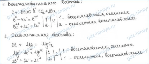 2. Напишите уравнения реакций с участием углерода, которые характеризуют отдельно его восстановительные и окислительные свойства. Рассмотрите окислительно-восстановительные процессы для них.