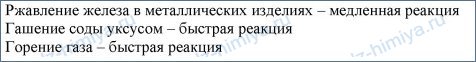 3. На основе личного опыта приведите примеры химических реакций, протекающих с различной скоростью.