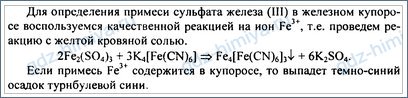 Докажите опытным путем, что железный купорос, образец которого вам выдан, содержит примесь сульфата железа (III). Напишите уравнения соответствующих реакций в молекулярном и ионном видах.